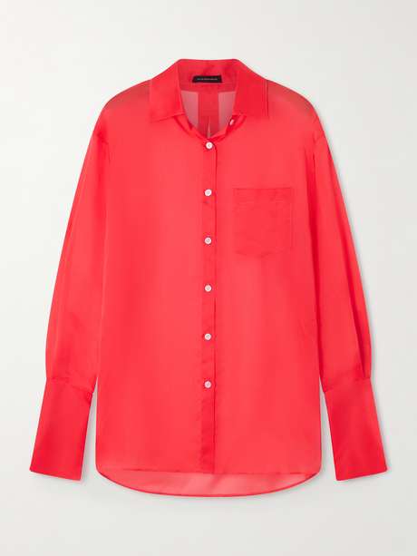 Kiki de Montparnasse's shirt is a statement addition to any wardrobe. This style is tailored from coral-colored silk-organza and finished with a classic pointed collar. Wear yours over lingerie or swimwear.