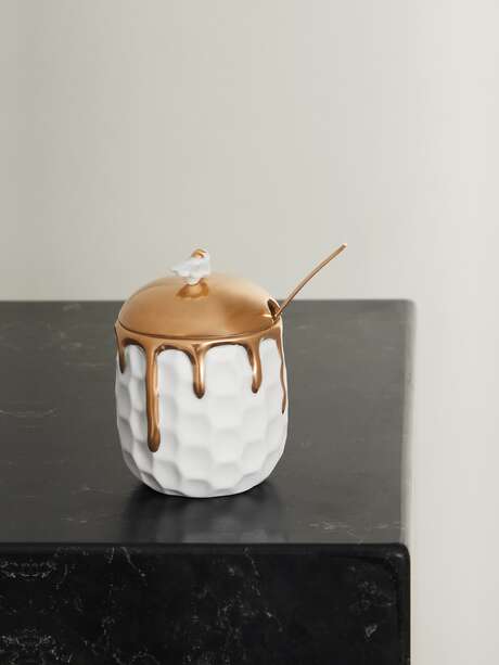 L'OBJET Beehive gold-plated porcelain honeypot and spoon