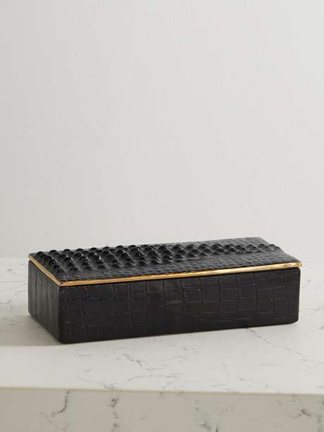 Add a touch of whimsy to your desk or mantlepiece with L'Objet's trinket box. It's crafted from porcelain that's textured to resemble crocodile skin and finished with gleaming gold-plated edges.