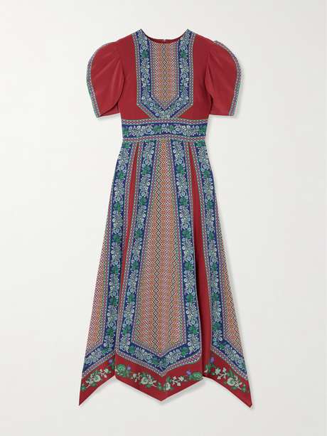 La DoubleJ's 'Cherie' dress is made from Italian silk with a beautiful hand-placed print. With a regal elegance, it's defined by gathered petal-like sleeves and a pretty peaked skirt hem.