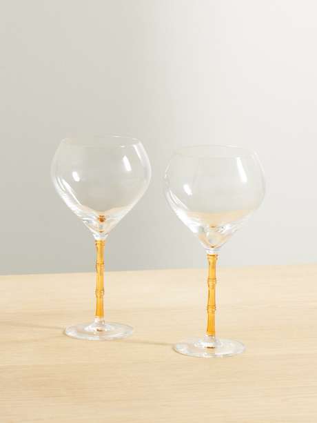 La DoubleJ's set of two glasses bring the island life to you in the comfort of your home. They've been made in Italy from glass and rest on colored bamboo-inspired stems. Use them to serve sweet cocktails.