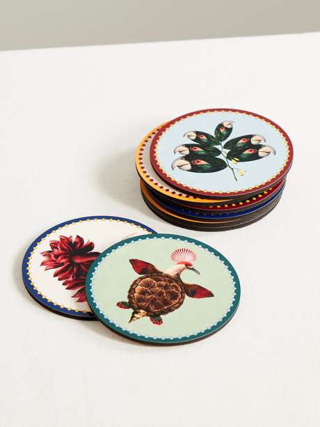 La DoubleJ's set of eight coasters channels the same exuberant flair as its ready-to-wear collections. They're made from wood and printed with surrealist nature illustrations created by artist Beto Val. The vibrant colors will pop against your dinner table or bar cart.