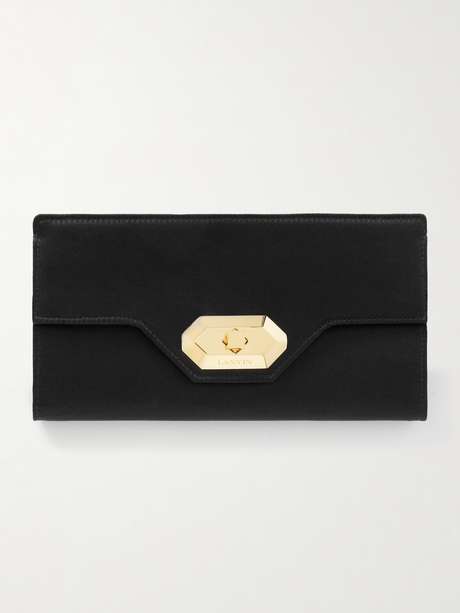 Lanvin's 'Invitation' clutch is elegant in its simplicity. Made from black satin, it has a slim chain you can detach to carry it as a clutch. The leather-lined interior comes in the label's signature blue and offers enough space for your cards, lipstick and mints.