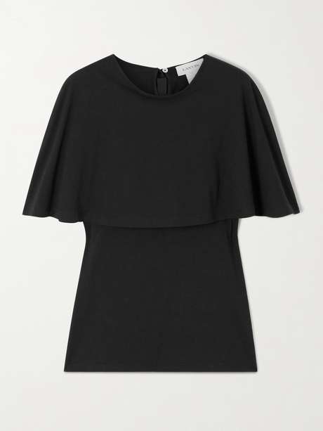 Lanvin reimagines the classic T-shirt with a charming twist. Made from a soft blend of cotton and silk, it has a sweeping cape-effect overlay that flutters softly as you move. Wear yours with tailoring or a chic skirt.