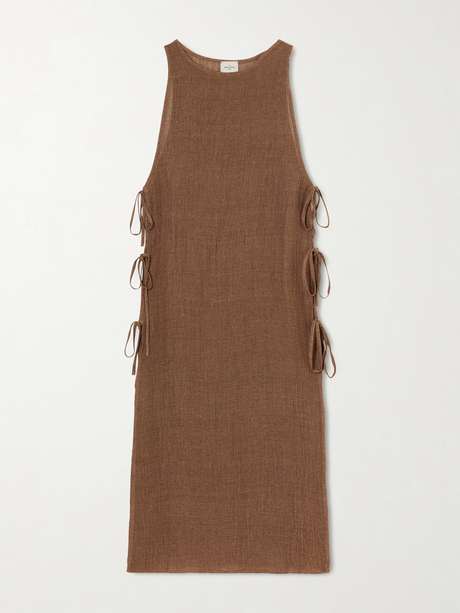 Le Kasha's 'Jarajug' dress is detailed with side ties that lend a subtle sweet touch. It's crafted from linen, making it ideal for warmer weather. Style it on its own or over a pair of pants.