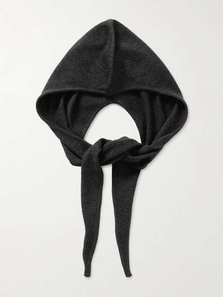 LEMAIRE's head scarf is made from fine, mercerized wool that's soft and breathable. It has long ties to adjust the fit. The anthracite mélange goes so well with the brand's neutral sweaters and coats.
