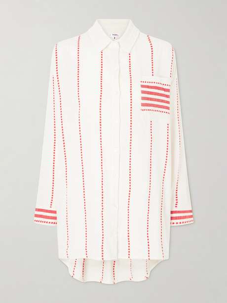 A sense of ease defines the 'Mariam' shirt dress by LemLem. Rendered in handwoven cotton, the Eshe Red pattern brings depth to its fluid, elongated silhouette. An effortless piece that shifts between structure and softness, style it with sandals for relaxed days.