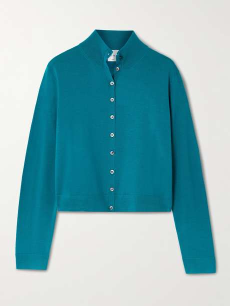 Uplift your knitwear collection with LESET's 'James' cardigan. In a vibrant 'Caribbean' turquoise, it's made from lightweight merino wool and has a relaxed shape with a ribbed mock neckline. Wear it with the matching tank.