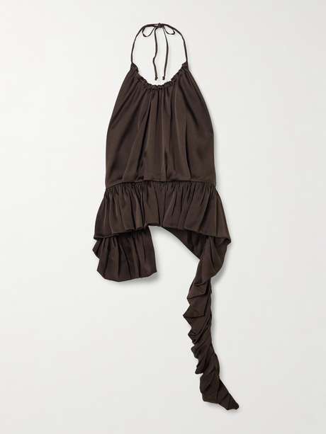 LIBEROWE's 'Tamara' top is designed with such a pretty shape enhanced by the flouncy peplum hem. Made from satin-crepe, it has halter ties to adjust the fit and is gathered along the neckline. The open back reveals plenty of skin.