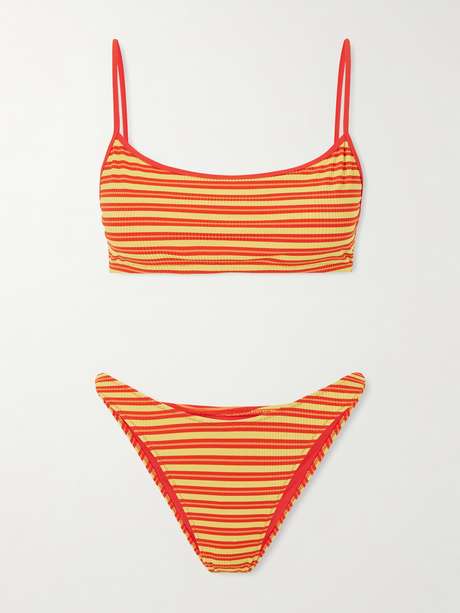Lido's swimwear is renowned for its minimalist silhouettes, which is what makes it so timeless. This 'Undici' bikini, patterned with stripes, has been made in the label's native Italy from stretch fabric and has slim straps and low-rise briefs.