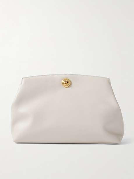 The gold-tone push-lock on Liffner's clutch has a spiralling shape inspired by a mandala symbol. Crafted in Italy from leather, it has a compact profile with a curved top and holds enough space inside for your phone, keys and lipstick.