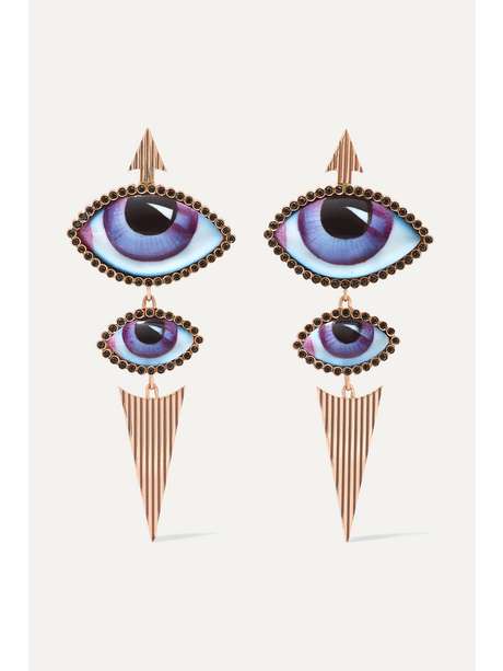 LITO Tu Es Partout 14-karat rose gold, enamel and diamond earrings