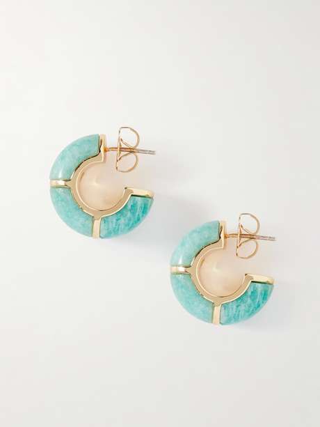 Named after traditional 'Zellige' tiles, Lizzie Fortunato's earrings are handcrafted from gold-plated metal and inlaid with color-rich amazonite. The chunky hoop shape draws the eye to your face, so they're perfect for glamorous events.