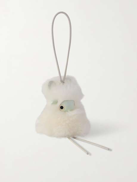 Loewe's 'Puzz' character charms are designed to celebrate the 10th anniversary of the label's iconic 'Puzzle' bag. Made from shearling and acetate, this one is shaped like a cute snow bunny and hangs from a knotted leather strap.