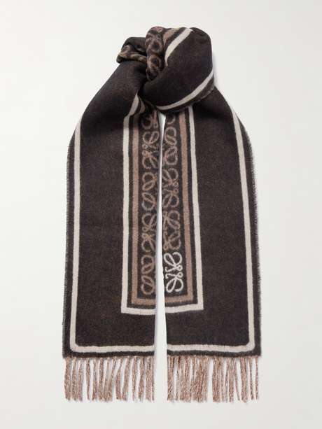 Loewe's scarf is jacquard-knitted with tonal 'Anagram' emblems and stripes, so it'll complement a range of outfits. It's spun from wool and cashmere-blend that's soft and insulating and has fringed trims.