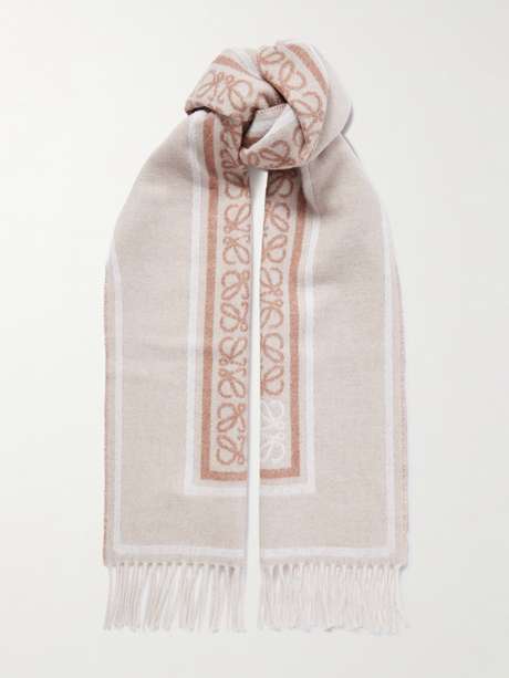 Loewe's scarf is jacquard-knitted with tonal 'Anagram' emblems and stripes, so it'll complement a range of outfits. It's spun from wool and cashmere-blend that's soft and insulating and has fringed trims.