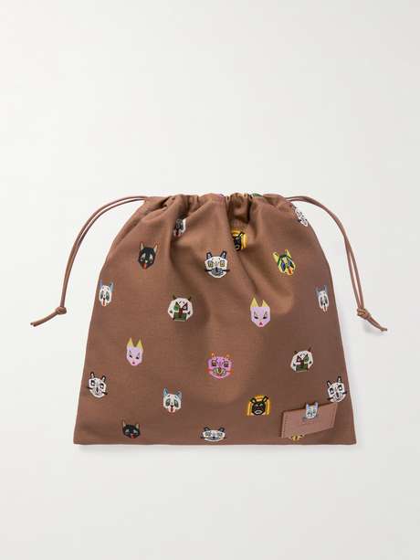 Cartoon cats lend a playful feel to Loewe's pouch. Made from cotton-twill, it has a slouchy shape with drawstring ties and a leather patch debossed with the label's logo. The interior has enough space for your phone, cardholder and lip gloss.