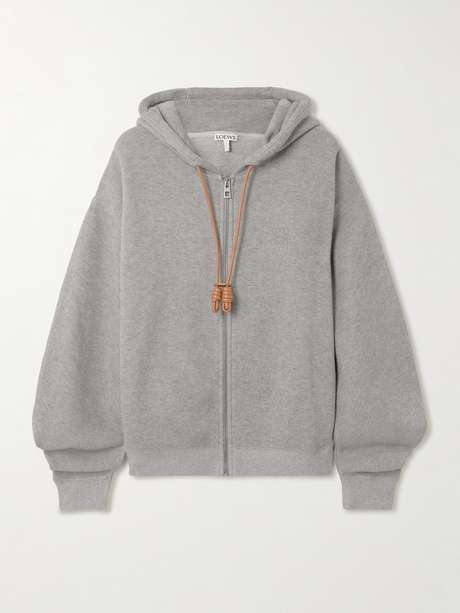 LOEWE Flamenco leather-trimmed cotton-blend jersey hoodie