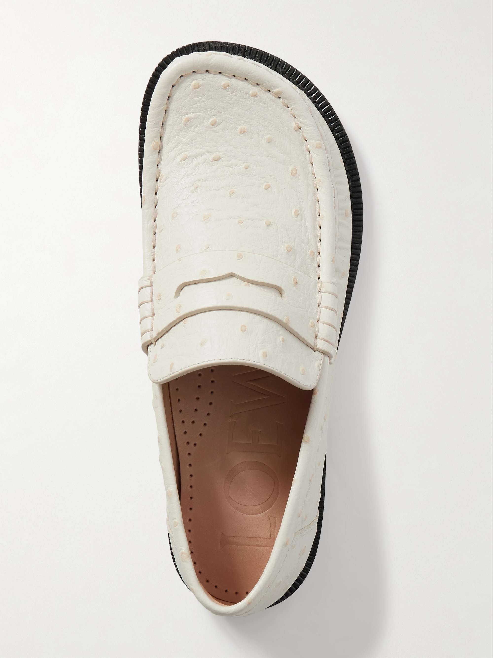 If you're trying to inject a little more fun into your wardrobe, Loewe's shoe collections won't let you down. These 'Campo' loafers are crafted from textured-leather with an elongated, asymmetric toe and classic penny slots.