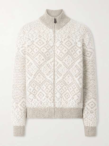 Loro Piana's 'Paroo' cardigan is made from sumptuous cashmere that's jacquard-woven with a geometric mountain-inspired pattern. Traced with ribbed trims, it has a cozy funnel neckline and a two-way zip fastening to adjust the relaxed shape.
