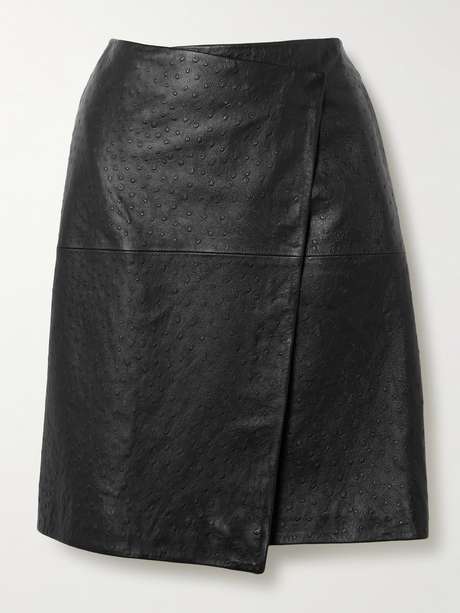 LOULOU DE SAISON Gora asymmetric ostrich-effect leather wrap skirt
