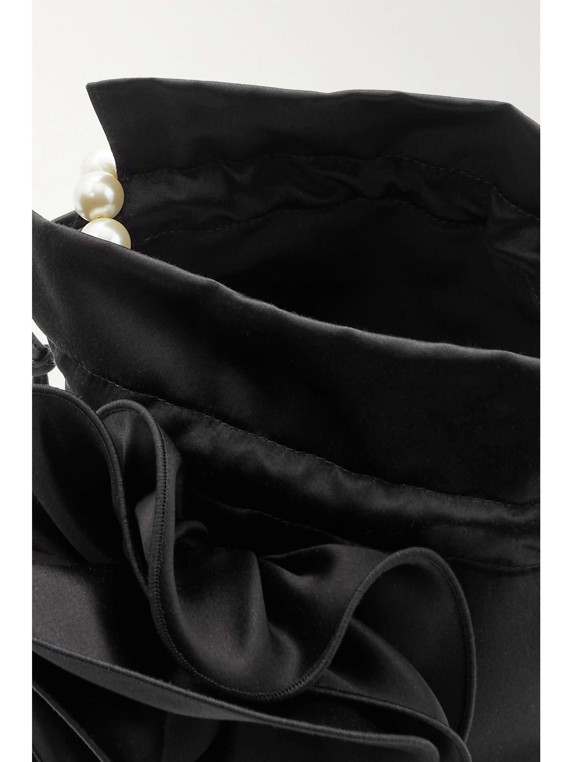 MAGDA BUTRYM Magda faux pearl-embellished appliquéd ruched satin shoulder bag
