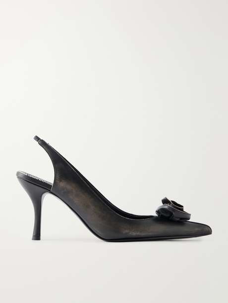 Magda Butrym reworks the classic pump with a sculptural floral appliqué at the toe. Made from leather, the 'Rose' slingbacks have a sharp pointed shape and are set on slender heels for a defined lift.