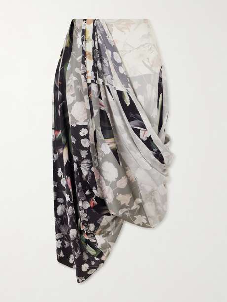 MAISON MARGIELA Asymmetrical draped floral-print silk-satin midi skirt