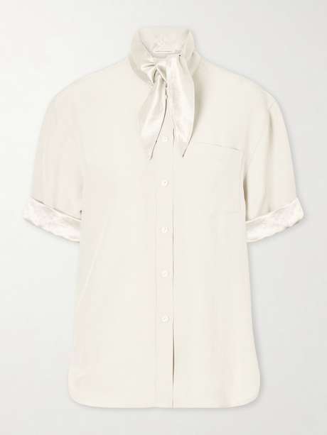 MARIA MCMANUS Tie-detailed sateen-trimmed crepe shirt