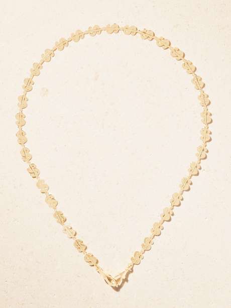 Marie Lichtenberg's 18-karat gold chain necklace plays with the language of luxury. Sculpted dollar-sign links form the silhouette, interrupted by a single diamond-pavéd link and finished with the house's signature handcuff clasp.