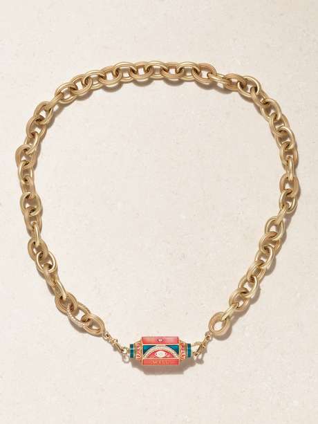 MARIE LICHTENBERG Eye Will 14-karat gold, enamel, diamond and pearl necklace