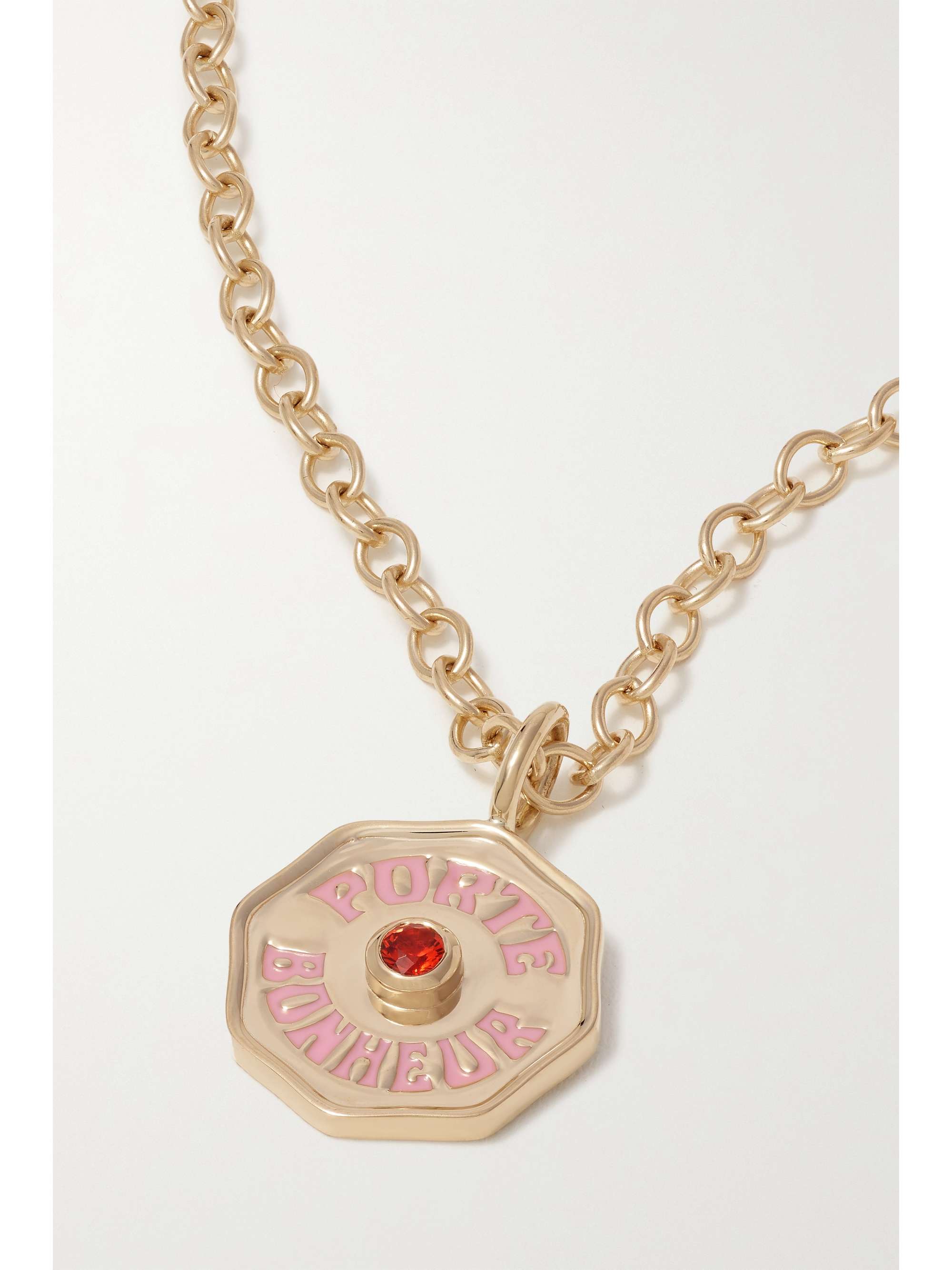 • MARLO LAZ Mini Porte Bonheur Coin 14-karat gold, enamel and alexandrite anklet