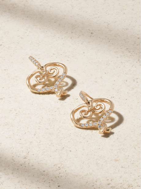 Marlo Laz's earrings are inspired by the "endless heart motif iron bridges and windows throughout Venice". Handmade from 14-karat gold, they're set with 0.30-carats of sparkling diamonds.