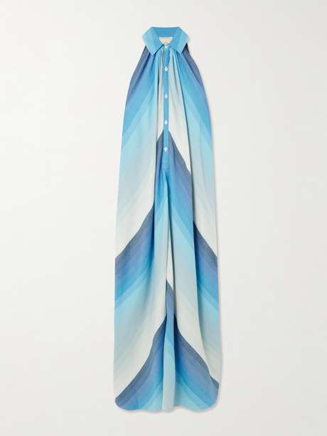 MARRAKSHI LIFE Striped dégradé cotton halterneck maxi shirt dress