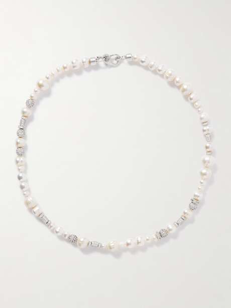 MARTHA CALVO Rhodes rhodium-plated, pearl and crystal necklace