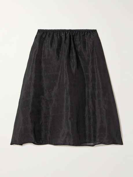 Matteau's skirt combines elegance and ease. It's made from a lustrous silk and linen-blend and cut to hit the knee in a straight silhouette with a little volume. It's the perfect vacation piece to take you from beach to dinner.