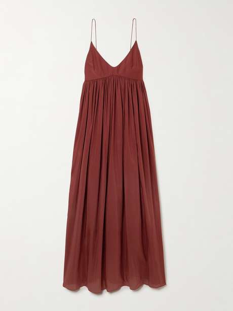 MATTEAU Gathered organic cotton and silk-blend maxi dress