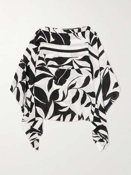 Max Mara's blouse is patterned with artful flora in silhouette. It's draped from silk crepe de chine with a flowy bodice and cropped sleeves.