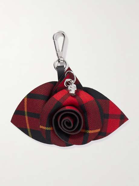 McQueen's bag charm blends a number of house codes. Designed in a rose shape, it's made from 'MacQueen' checked jacquard and embellished with silver-tone 'Skull' hardware.