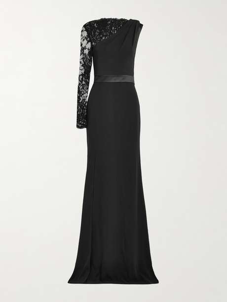 MCQUEEN Lace-trimmed crepe gown