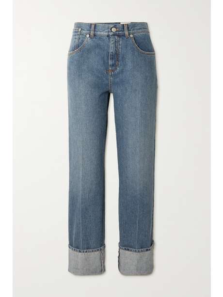 Alexander McQueen's mid-rise jeans are cut for a timeless straight-leg fit. Made from washed denim, they have a classic five-pocket construction and rolled up cuffs. Wear yours with a tucked-in T-shirt.