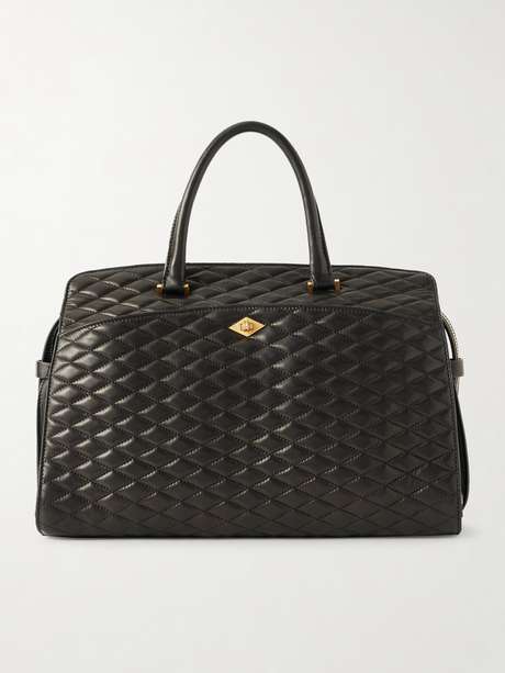 Metier's 'Private Eye' tote exemplifies the label's modern vision of luxury. Crafted from leather with diamond quilting and gold-tone accents, it features a distinctive curved silhouette and polished clasp. It's sized to accommodate a 13-inch laptop, book and water bottle, and has an inner compartment that can be detached to become a sleek evening clutch.