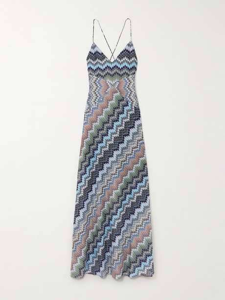 Missoni's unmistakable chevron pattern lends instant character to this maxi dress. Crochet-knitted in Italy, it's designed with slim straps and skims the figure as it falls to a maxi length. Wear yours with barely-there sandals.
