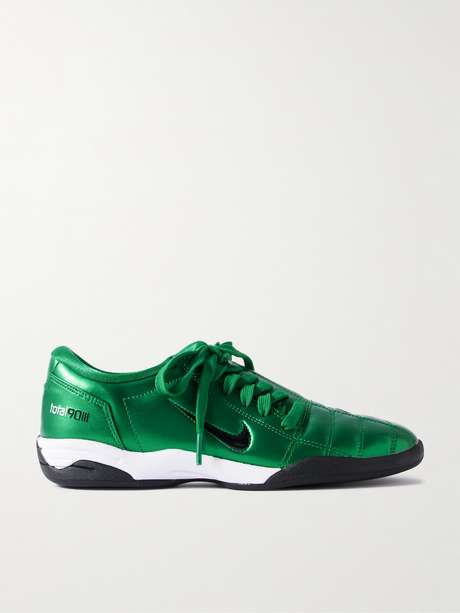 Initially designed as a soccer cleat, Nike's 'T90' sneakers took the industry by storm in the early noughties and are making just as much of an impact in their return. Updated with a flat rubber sole, this pair is made from panels of metallic leather and has the same asymmetric laces as the original.