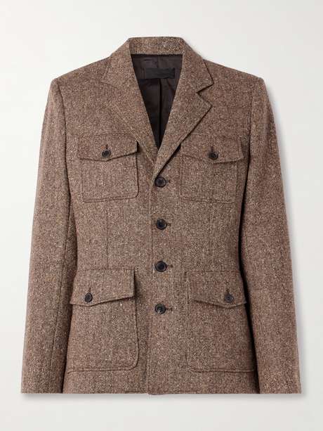 - Light-brown mélange wool-blend tweed