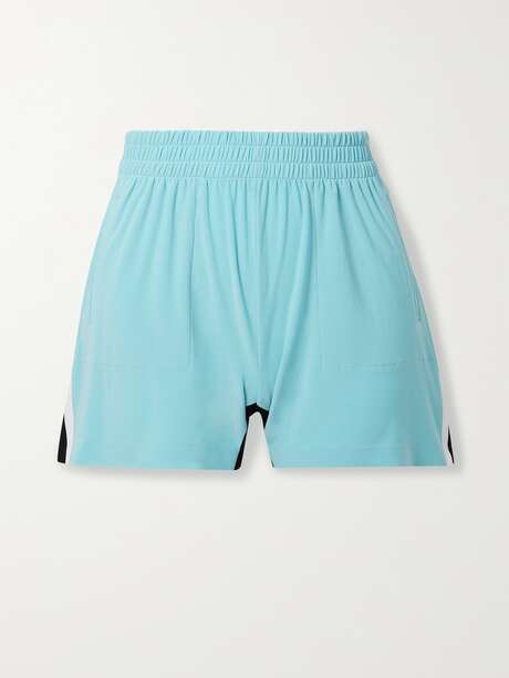 Norma Kamali's color-block shorts are perfect for running errands or off-duty lounging. They're cut fort a relaxed fit from lightweight stretch-jersey and detailed with sporty stripes down the legs. Just add your favorite hoodie or T-shirt.
