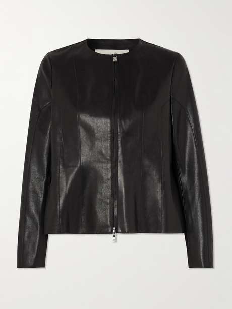 It's an understatement to say that Nour Hammour has mastered the art of leathermaking. This jacket is cut for a close fit from black lambskin that's incredibly soft and supple. It's unlined to give a little extra room for layering.