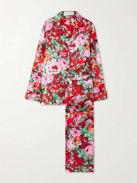 OLIVIA VON HALLE Lila floral-print silk-satin pajama set