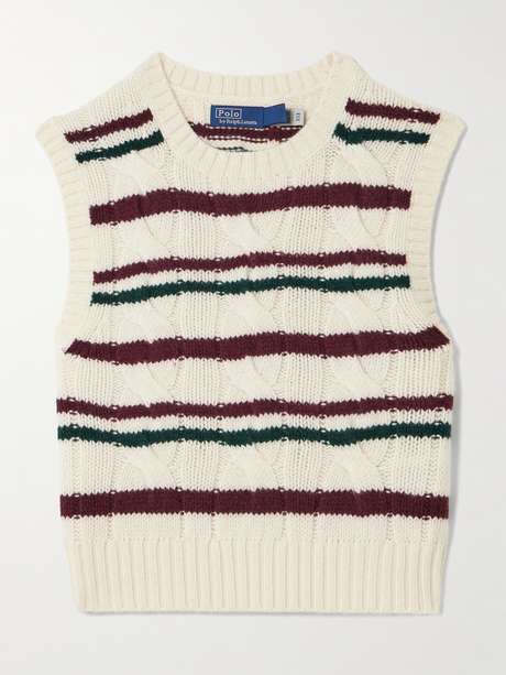 Polo Ralph Lauren's cropped vest nods to the collegiate style that's run through its design DNA for decades. It's cable-knitted from wool and cashmere-blend and is patterned with horizontal stripes.