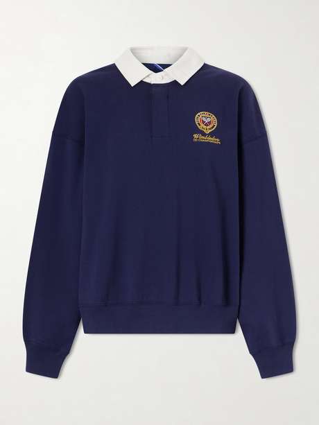 Polo Ralph Lauren’s polo sweater from the Wimbledon 2026 collection is inspired by vintage rugby styles. Made from cotton-jersey, it has a boxy fit, dropped shoulders, and a contrasting pointed collar, with the tournament logo embroidered at the chest.